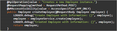 • Method Name Example: createEmployee