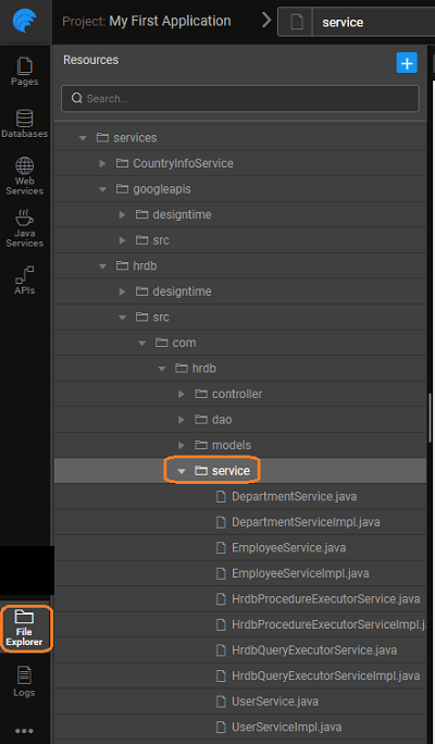 When a database is integrated into a WaveMaker app, it generates the source code for CRUD operations for each entity within the database. In addition to the CRUD APIs, the filter, count, and export APIs are also generated. Associated APIs in the case of related tables are also generated.