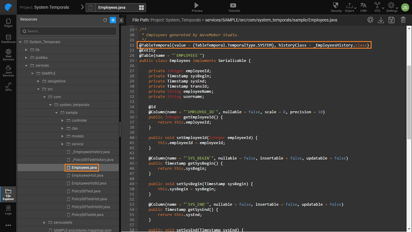 • ApplicationTemporal - Tables having Application Temporal will be annotated with this annotation.