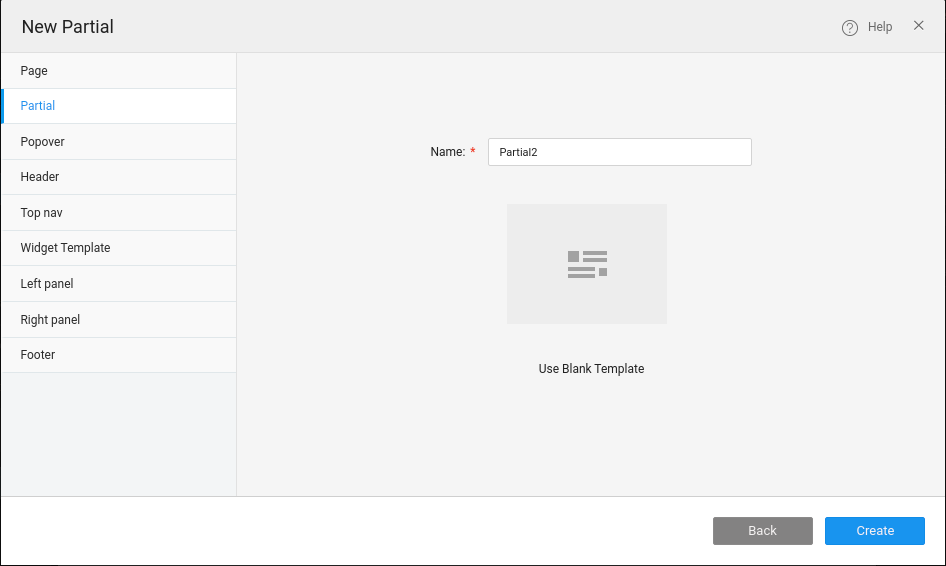 Step-2: Name your partial and create.