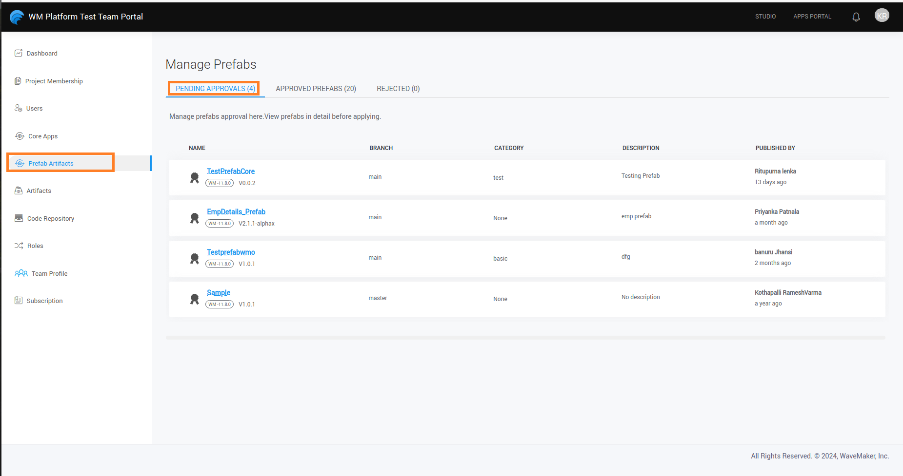 2. In Prefab Artifacts, go to the Approved Artifacts where we can select the Artifact to share.