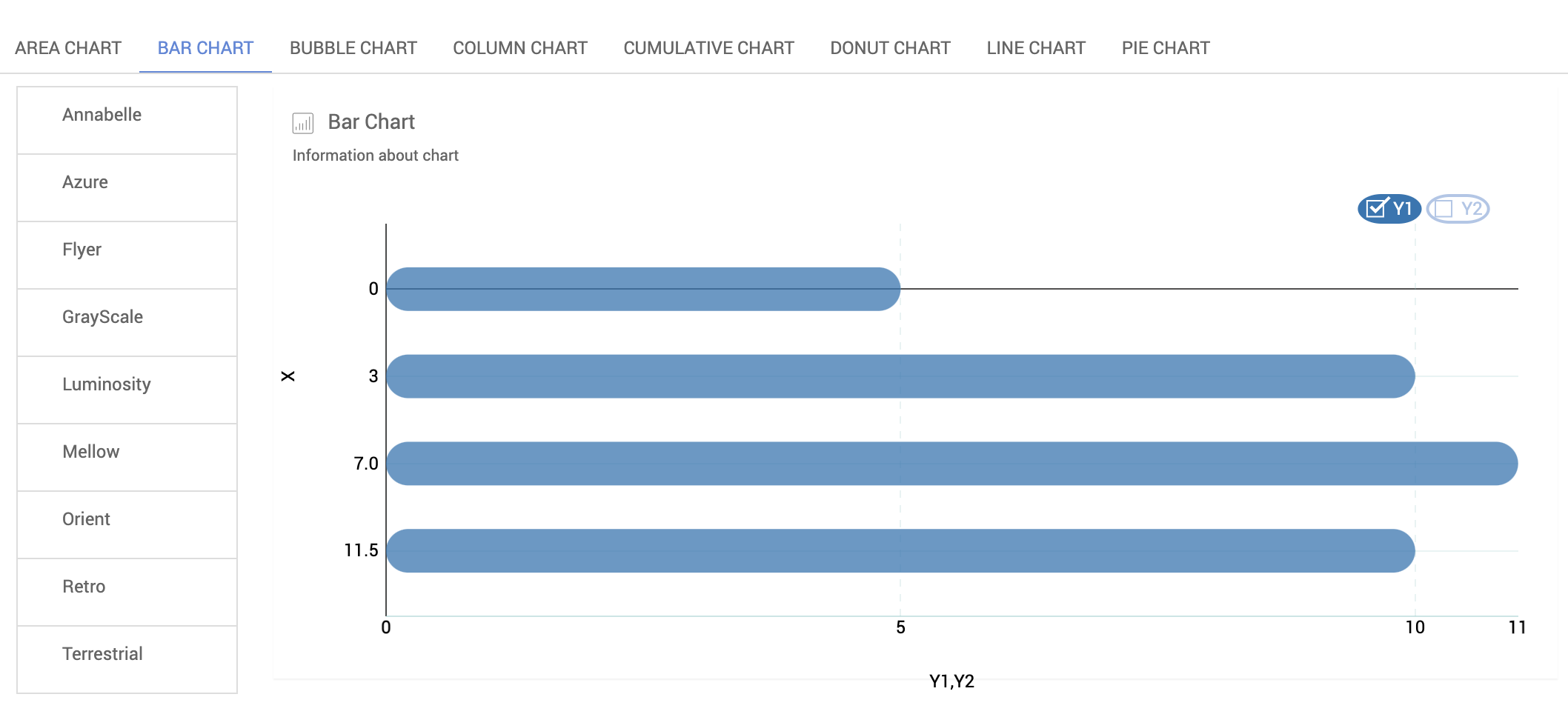 In WaveMaker Studio, you can use the following chart types as specified below.