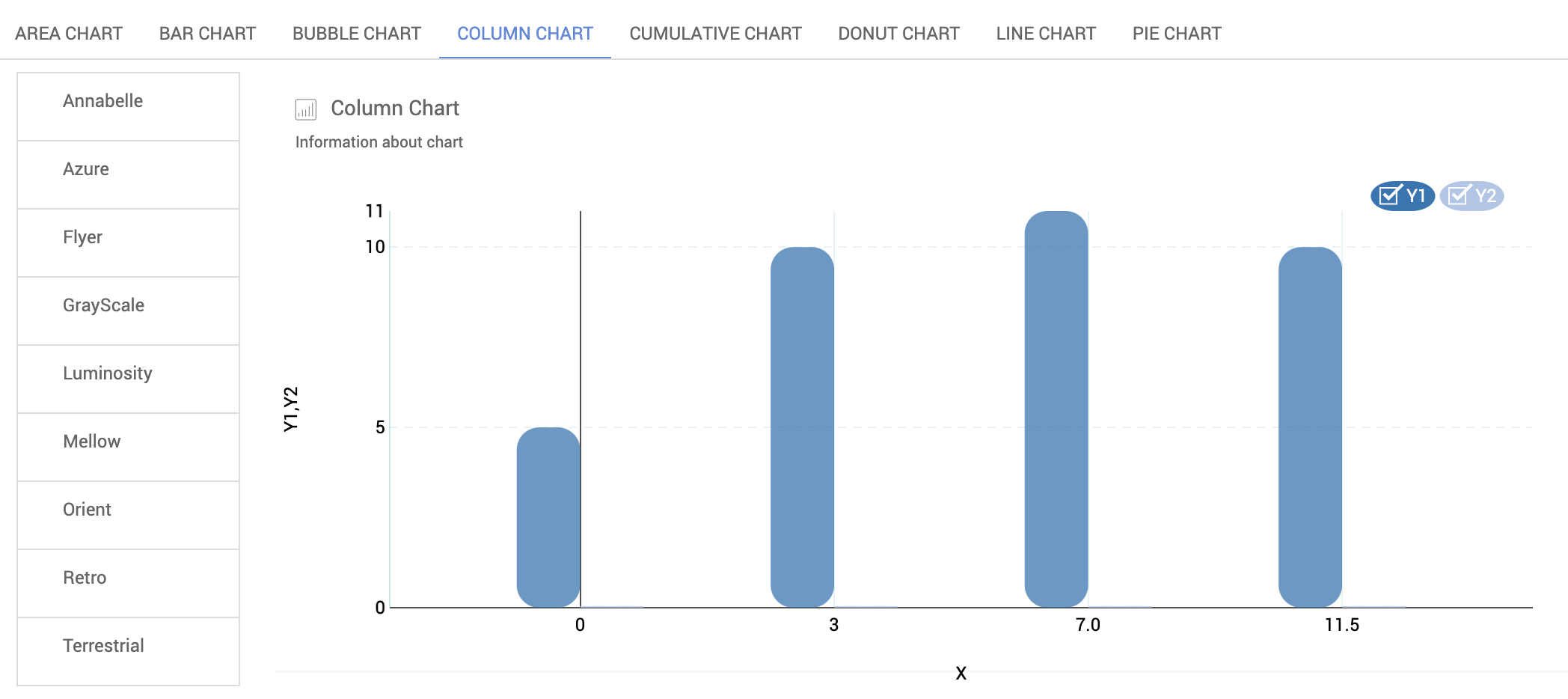 • Hovering mouse over any column displays the values of X and Y-Axis for that data point.