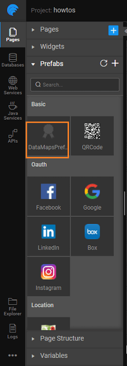- The Prefab will be available for use across the Projects. You can see the entry in the Artefacts list and in the Widget Toolbox of any Project within your workspace.