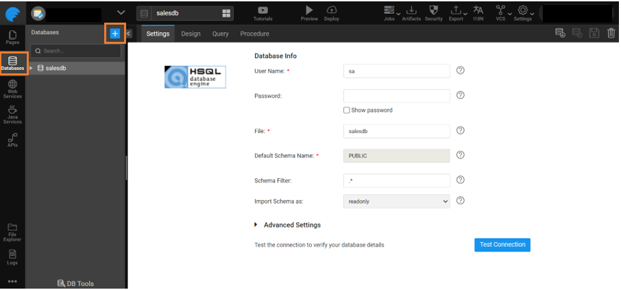1. Go to Databases and click on '+' to add a new database.