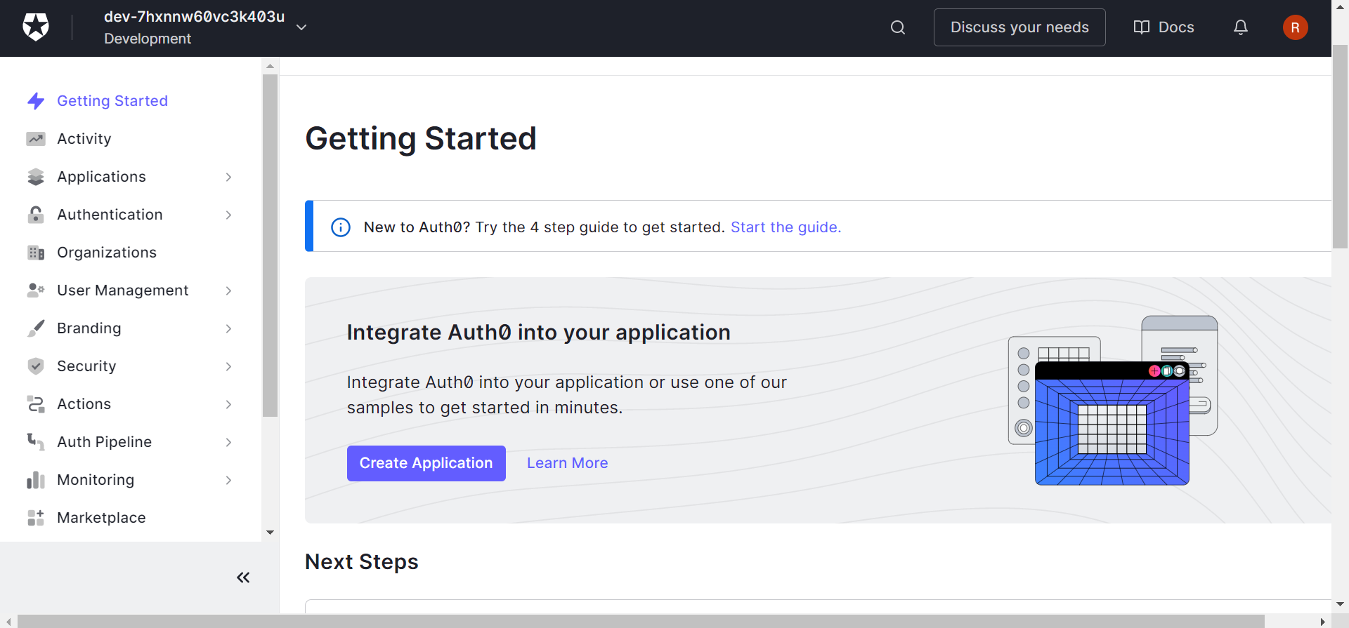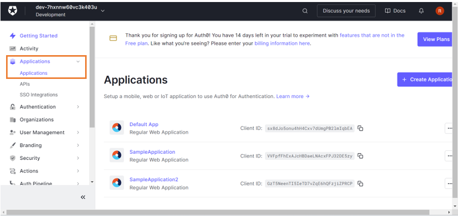 1. Go to Auth0 and set up user account. This is to create an Auth0 application to fetch the Client ID and Client Secret.