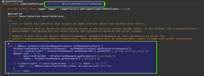 Implement a custom Authentication Service which will take the JWT access token , ID token and create a WMUser Object.