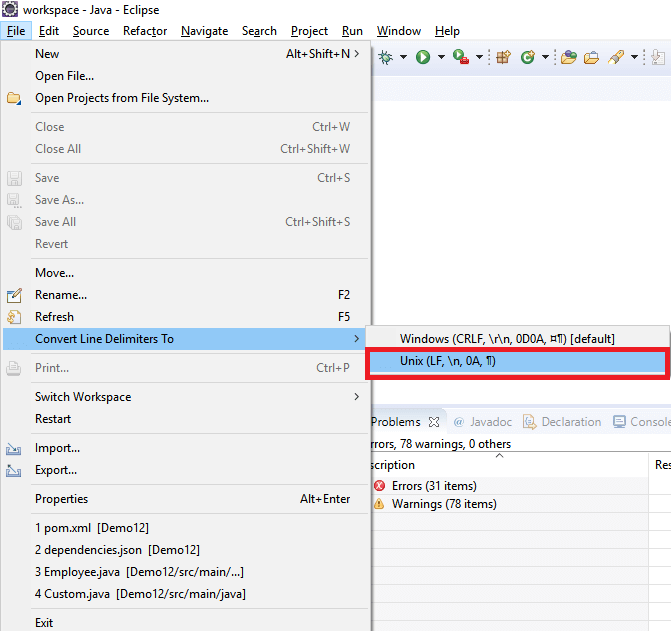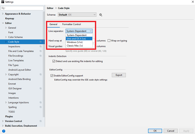If you are using any IDE or programming editor of your choice, make sure to change the line separator or delimiter to Unix (\n). For example: In intellij IDEA :- From the code Style panel, set the Line Separator field property from system-dependent to unix-style.