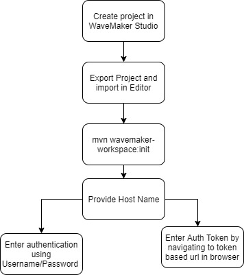- Token - For this, you need to have an active WaveMaker session. Use the URL https://www.wavemakeronline.com/studio/services/auth/token to obtain token value and enter it at the prompt. Do not logout of the WaveMaker session till you complete the synchronization.