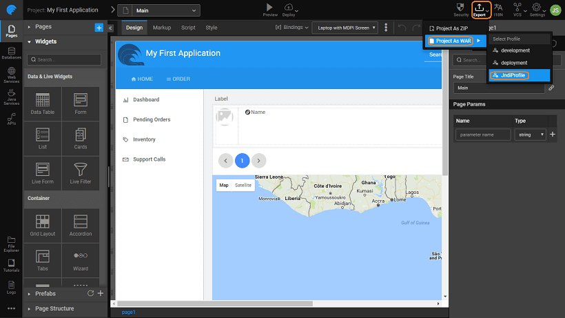The Project sources zip/directory Export Project as zip from WaveMaker.