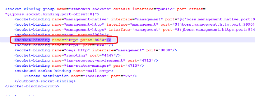 • And search <socket-binding name="http"