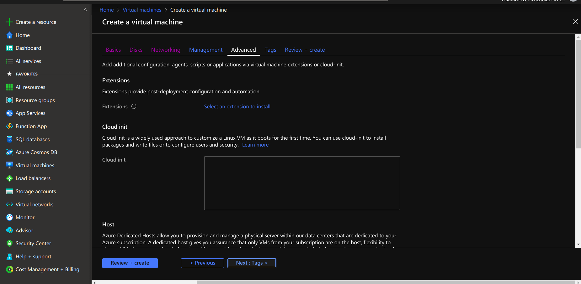 • After reviewing the virtual machine, select the creation option for creating a virtual machine.