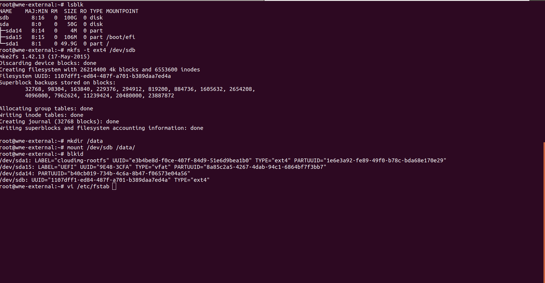 Command : mkfs -t ext4 /dev/<block-device-name>