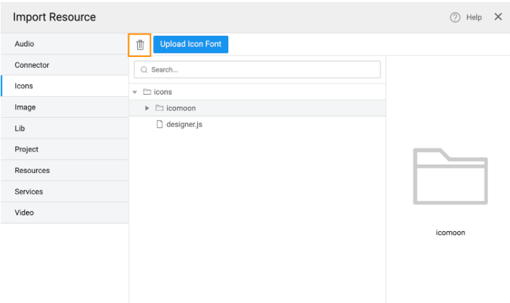 1. Go to the Import Resource dialog to view the imported custom font family in the Icons tree.