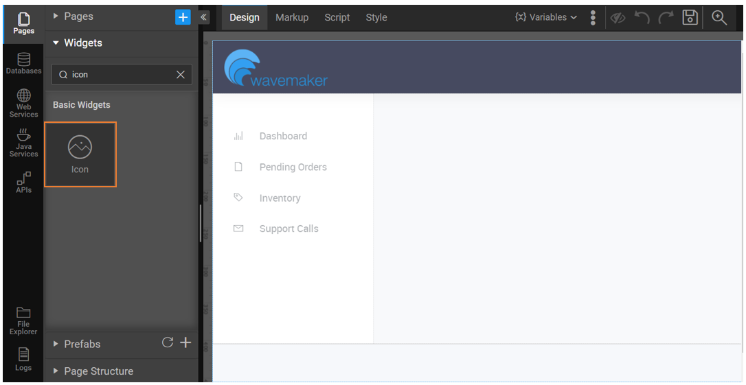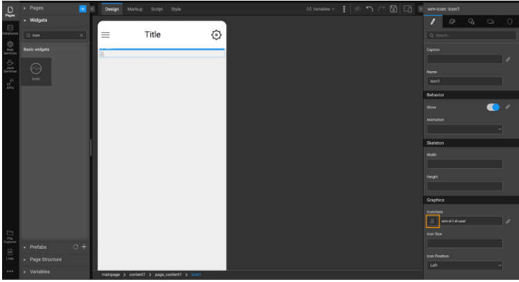 1. Open the Select Icon dialog to view the uploaded icons family.