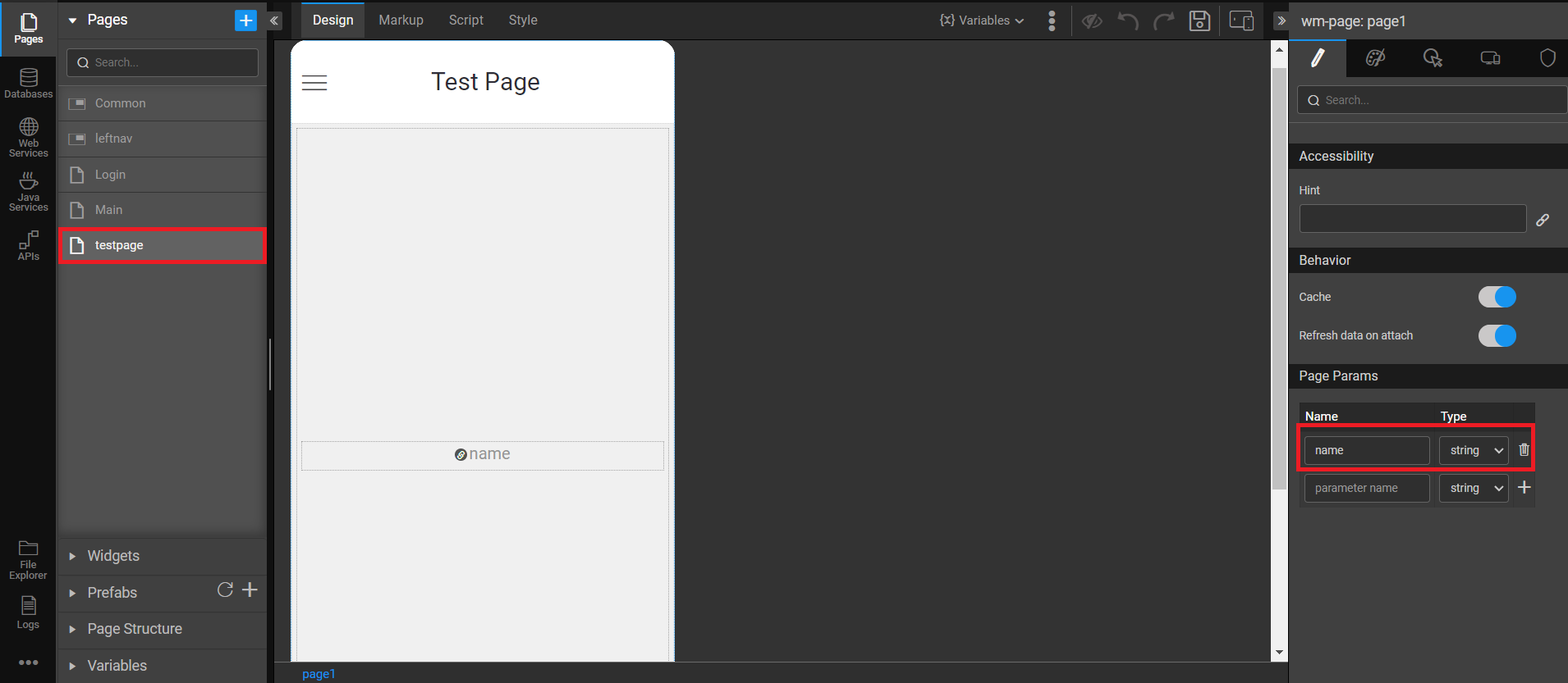 , it is imperative to first establish parameters for that page within the WaveMaker app.