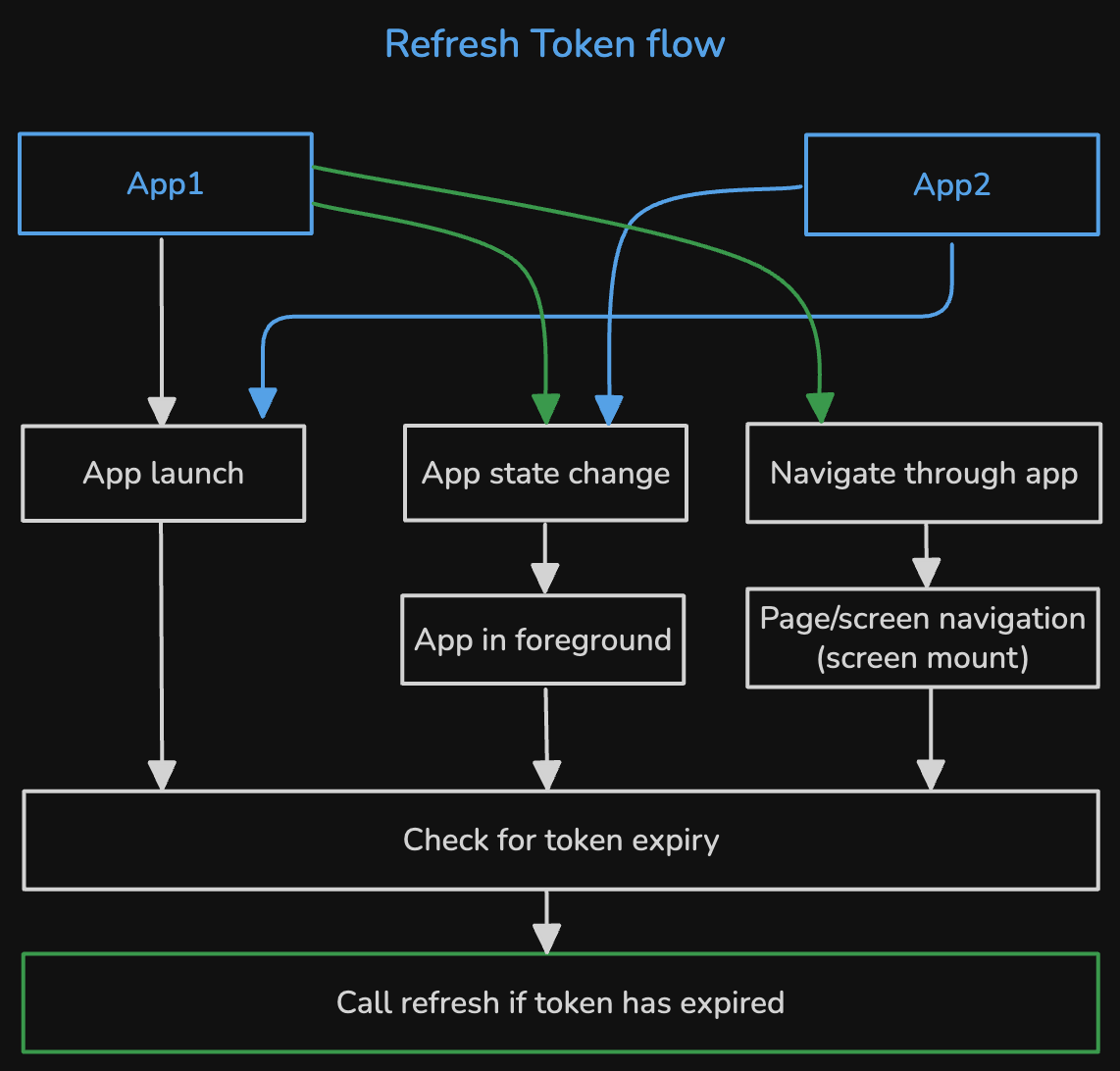 The silentLogin function can also be used in App 1 when the app is reopened or during app launch to check for existing valid tokens, avoiding the need for users to re-authenticate if they have previously logged in.
