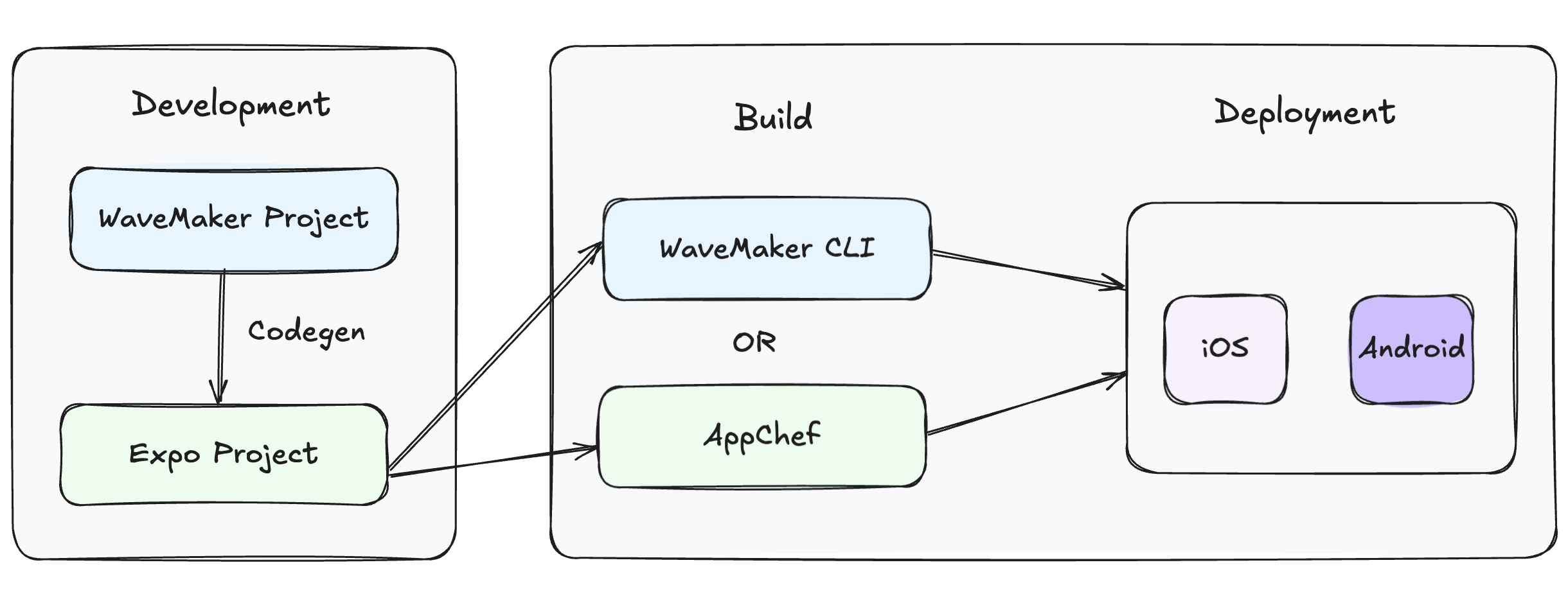 • Build for Stores: Use the WaveMaker CLI or AppChef to convert the Expo project into installable .ipa (iOS) or .apk (Android) files.