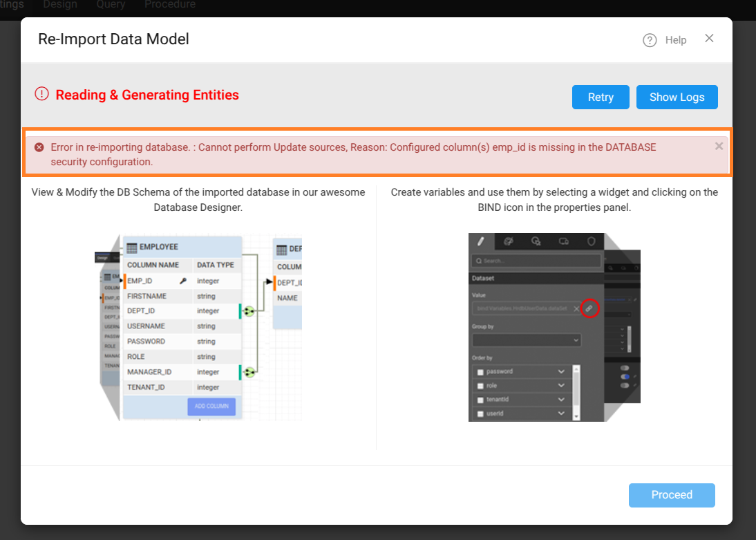 Error Message Issue during Database Reimport